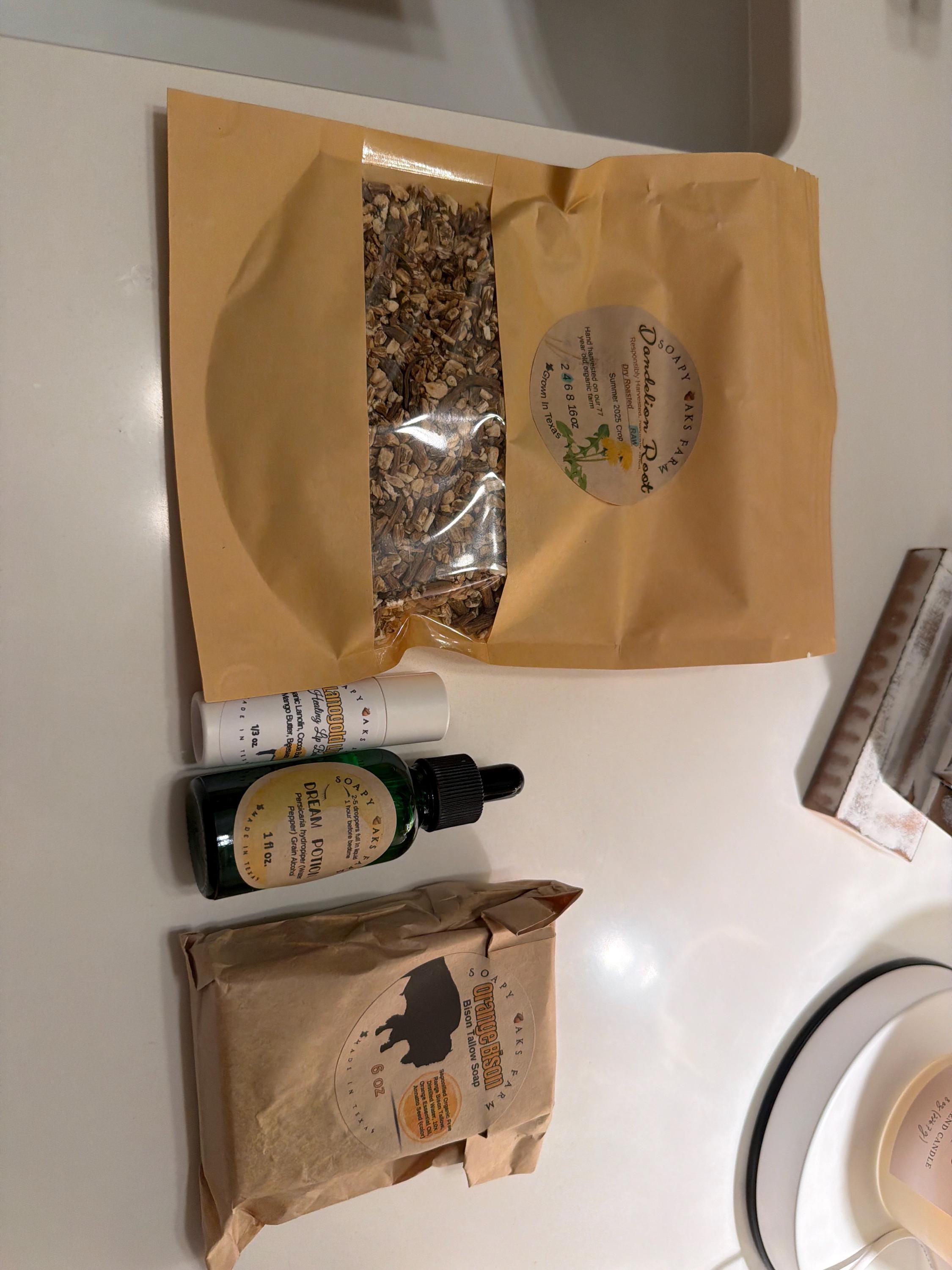 Dandelions grow wild here at Soapy Oaks Farm in NE Texas and my family has harvested and benefited from teas & tinctures made from this delightful and healthful root. I harvest (dig) the roots in late summer after bloom and seed dispersal when all the nutrients and natural constituents are most active in the roots. I use no pesticides or herbicides on my land, these are 100% organically grown. After harvest, these are carefully washed, dry roasted (choice of raw or roasted) at low temperature, and cut for easy use in a tea bag or tea ball.