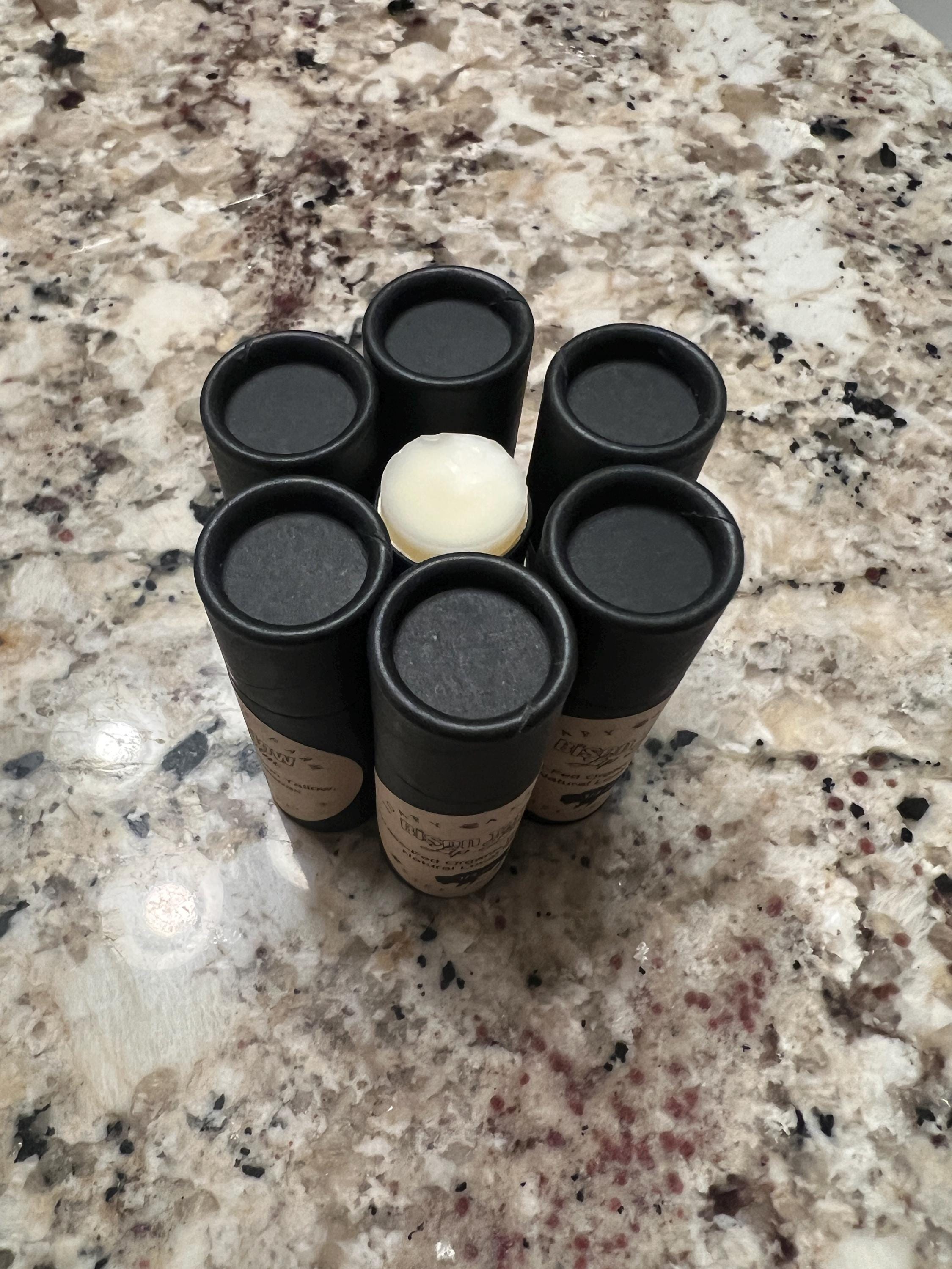 Bison Tallow from a local grass-fed and grass finished organic farm. Bison Tallow is so like our own body's chemical makeup that it's readily absorbed and immediately goes to work moisturizing and leaving your lips feel protected. Only 2 ingredients, no added colors, or flavors.