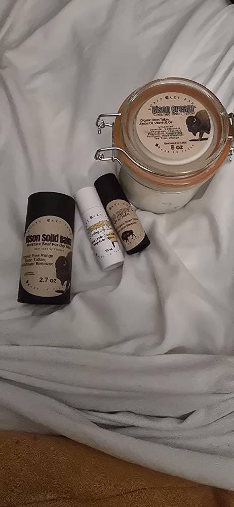 NOTE: Natural Bison Tallow's smell can change from season to season depending on many factors, such as grasses or other botanicals they eat, temperature and rainfall. If you get unscented keep in mind that does not mean there is no scent to the natural tallow.