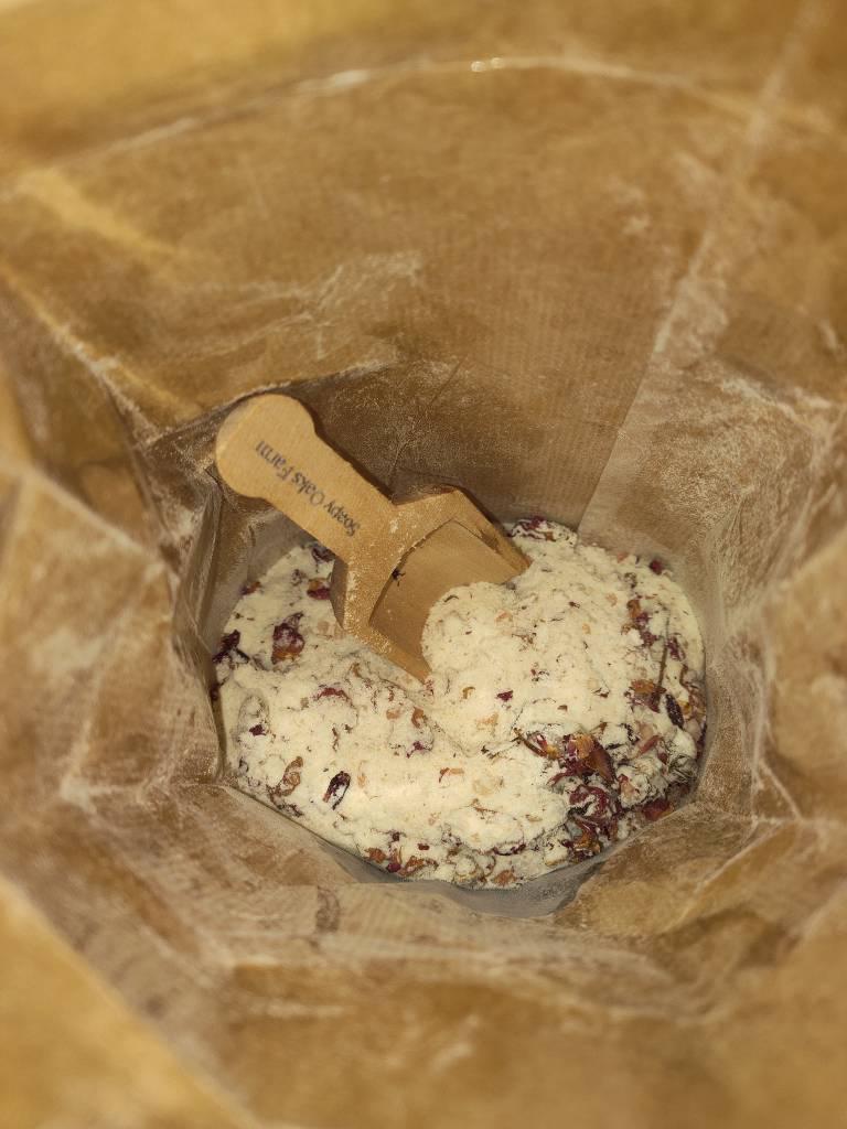 My goat milk is the best, of course I am biased :) A local dairy owner has s daughter that can only drink goat milk, he only raises cows, so I barter, I give him 5 gallons, he the gives me back 2 1/2 gallons dried, its the perfect arrangement. I have created this luxurious bath delicacy just for you. Goat milk is full of essential fatty acids that help us to shed dead skin cells, revealing the healthy skin beneath. The salts have trace minerals that are water soluble and offer detox benefits. The Magnesium Chloride is there to help relieve stress and help create a relaxing and nourishing bathing experience while helping to replenish much needed minerals. Due to NOT adding any anti-clumping chemicals or other artificial ingredients some clumping will occur, but are easily dissolved in water.