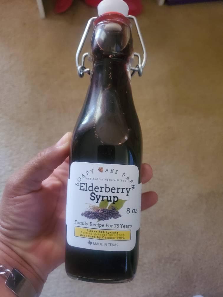 Great elderberry syrup. I order it from this shop every cold and flu season. Works great. Tastes delicious. Very fast shipping. Adore the bottle and always repurpose. Thank y'all.